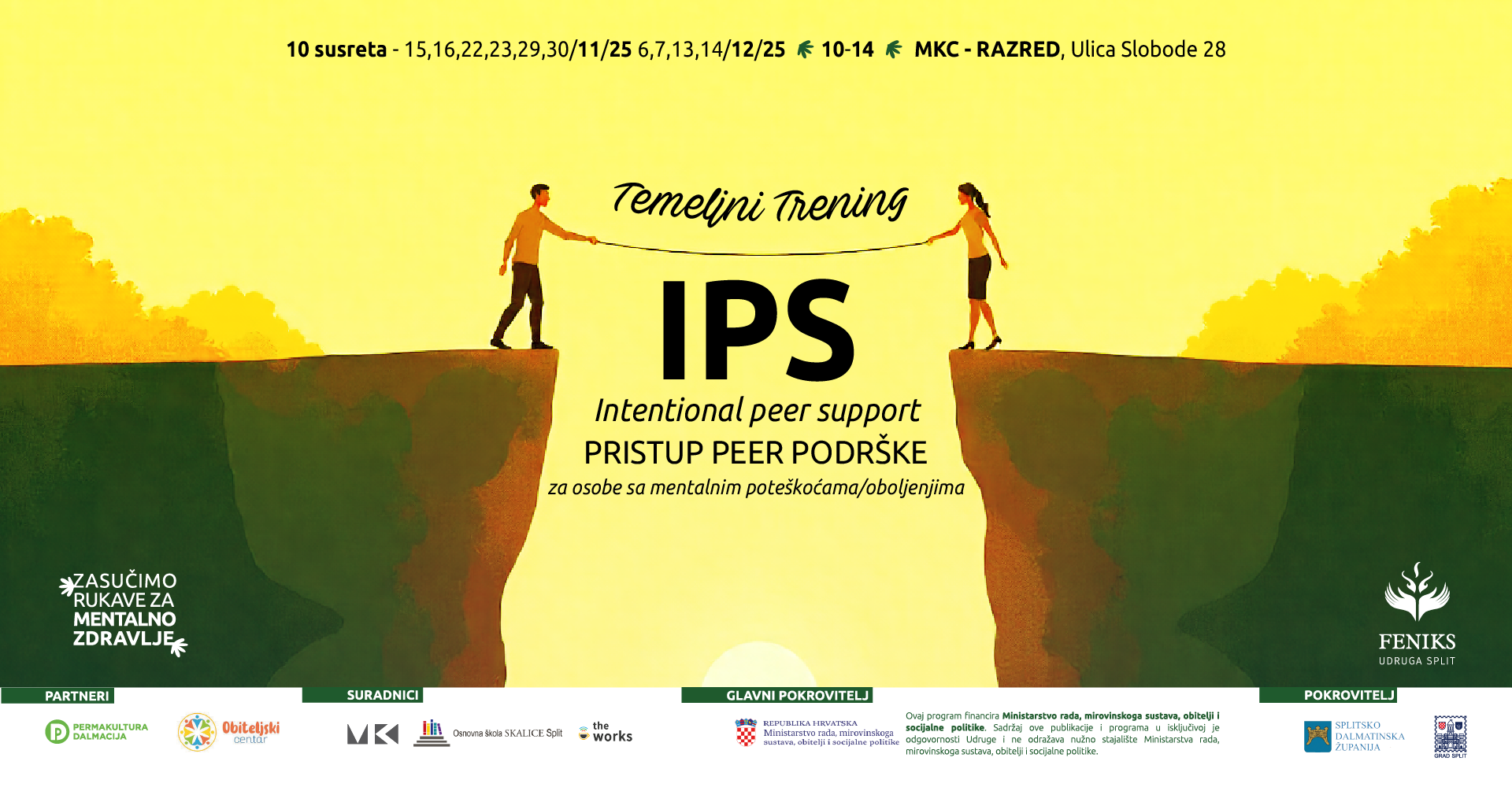 Edukacija je besplatna zahvaljujući podršci Ministarstva rada, mirovinskoga sustava, obitelji i socijalne politike, Grada Splita i Splitsko-dalmatinske županije, kroz program „Zasučimo rukave za mentalno zdravlje“.